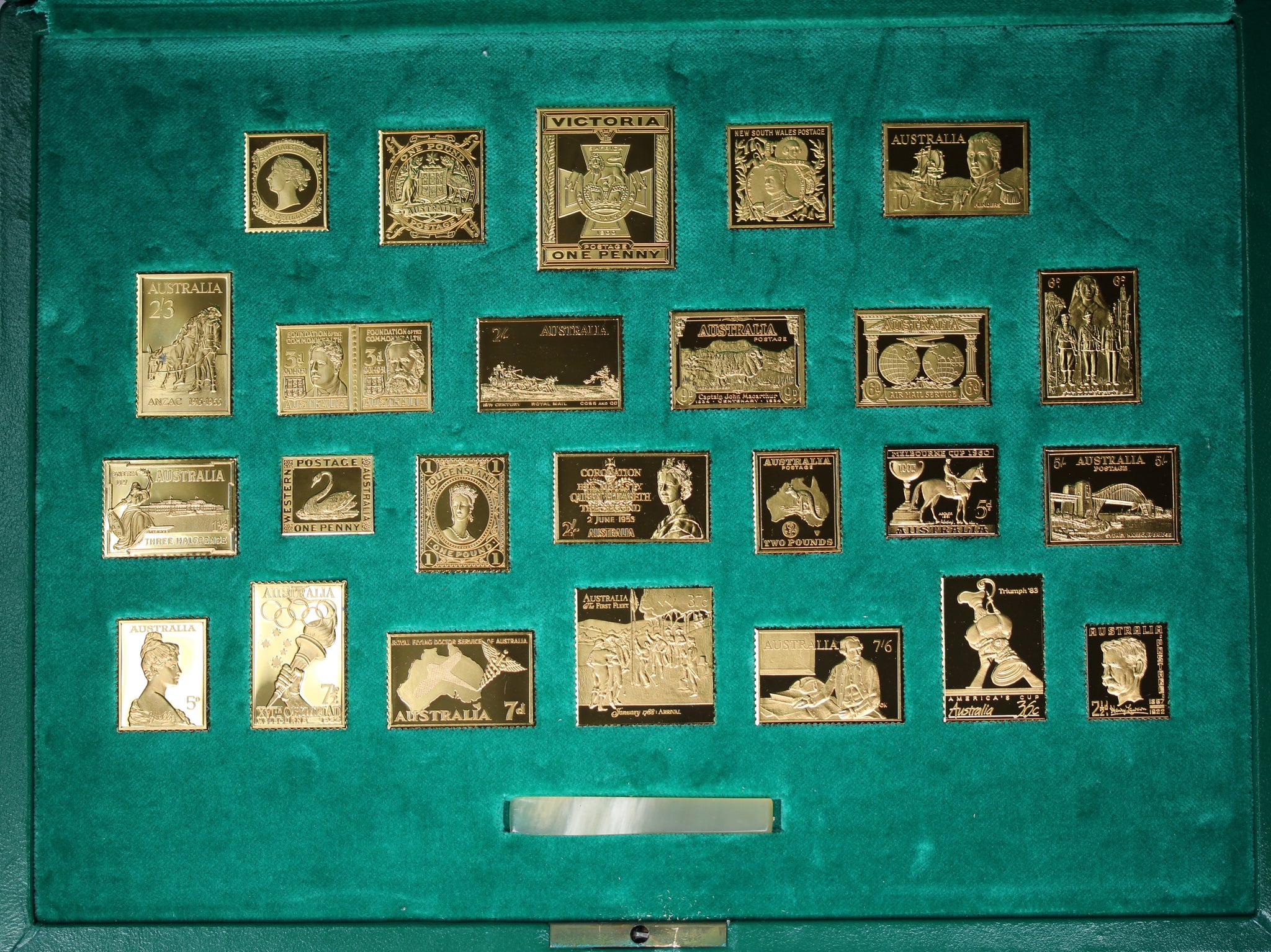 Sterling silver 92.5% set of replica stamps which have been gold plated.