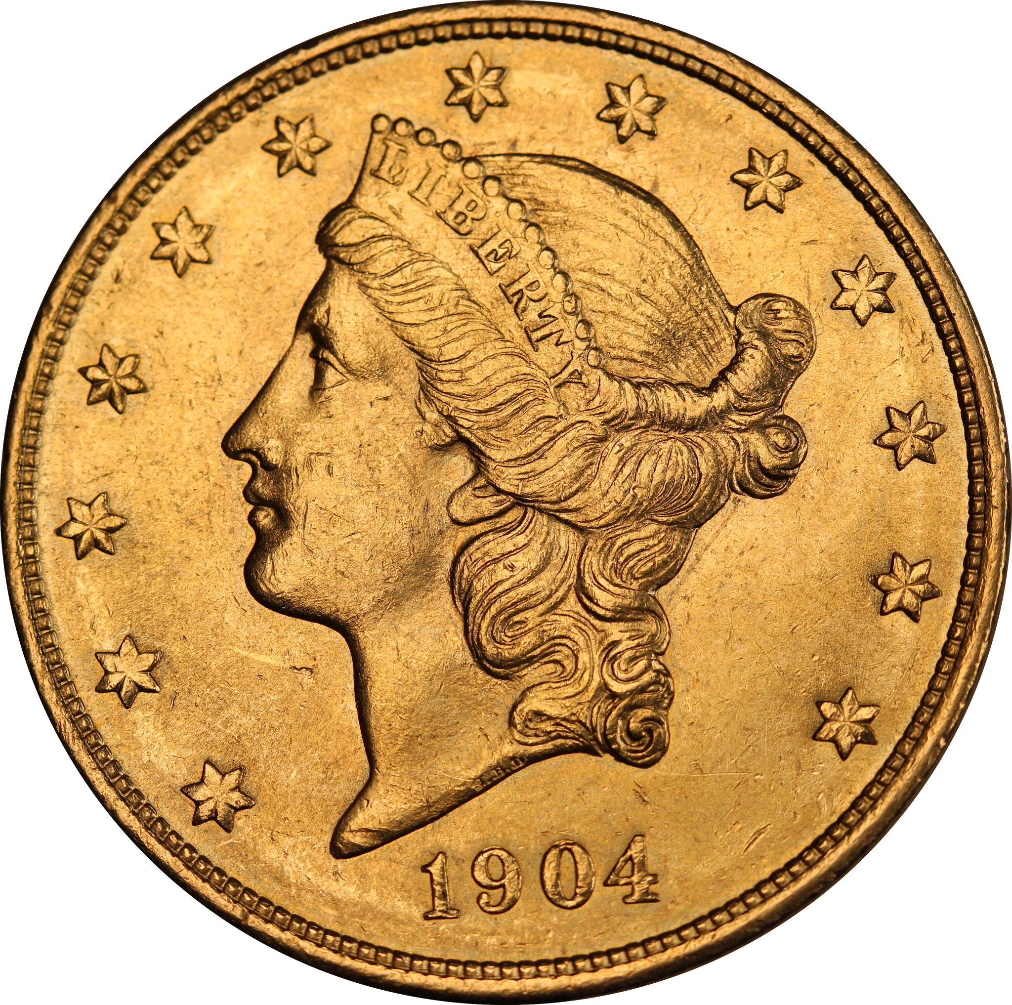 The 1904 $20 Double Eagle Gold Coin is a classic American gold coin from the Liberty Head series, designed by James B. Longacre.